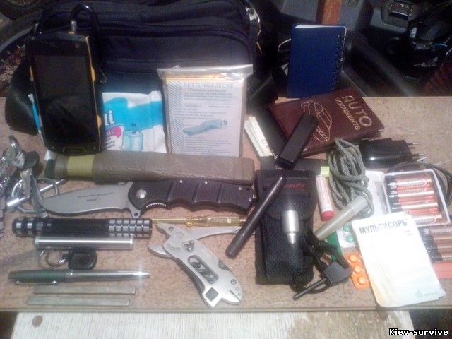 | перелаживал весчи из сумки в сумку , последние пол года набор для города такой , разве только нож МОРА- а был ФОКС 131 МЖТ, и фонарь меняется иногда на дайвинговский . бокер АК 101 - на кармане. -документы и деньги -ножи МОРА и БЕКЕР -тул Jeep -блокнот,ручка -2 фонаря -космическое одеяло -влажная туалетная бумага -сигнал охотника с зарядами -бруски для правки ножей -пробник -таблетки, пластыри -батарейки -зарядное,кабель -паракорд1.5м,зажигалки,в контейнере леска и крючки -огниво -телефон Texet X-Driver как то так.
